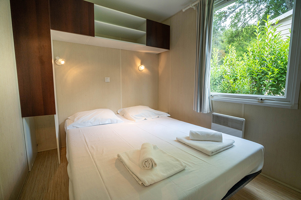 "Faites comme chez vous !" C'est généralement les premières phrases que votre entourage vous dit quand il vous invite. Les mobil-homes sont des petites maisons ayant toutes les commodités nécessaires pour en faire de même ! Ils sont équipés de deux chambres dont une avec un lit 2 personnes et une seconde avec deux lits 1 personne. Un lit d'appoint est aussi dépliable dans le salon (draps et linge de maison non fournis). Une kitchenette avec feux gaz, un réfrigérateur grand volume et un micro-ondes vous serviront pour vos petits-déjeuners, vos déjeuners et vos dîners. Une salle de bain et des wc indépendants sont disponibles rien que pour vous et vos co-vacanciers ! Le petit plus du logement ? Un convecteur dans chaque pièce, un salon de jardin pour prendre l'apéro en terrasse et un barbecue à charbon pour poursuivre vos soirées à la belle étoile. Un kit vaisselle et couchage pour 5 personnes sont déjà fournis. Puisqu'il n'y a rien de tel qu'un bon vieux jeu de société et que nous souhaitons favoriser les rencontres ou tout simplement les retrouvailles, nos locations ne sont pas équipées de téléviseurs.